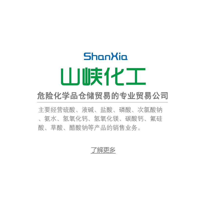安慶市山峽化工有限公司成立于2013年1月,主營(yíng)化工產(chǎn)品98%濃硫酸、精制酸(蓄電池酸)、稀硫酸定制、32%液堿、片堿、純堿、氫氧化鉀、氫氟酸、氫氧化鈉、鹽酸、磷酸、次氯酸鈉、氯化鈣、氨水、氫氧化鈣、氫氧化鎂、碳酸鈣、氟硅酸、草酸、醋酸鈉等化工產(chǎn)品。